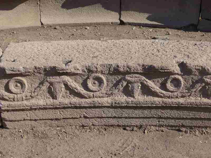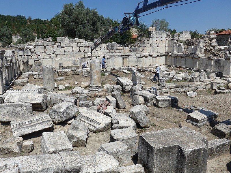 足場の間からわずかにその碑文が垣間見えました。碑は地母神キュベレーの神殿とし